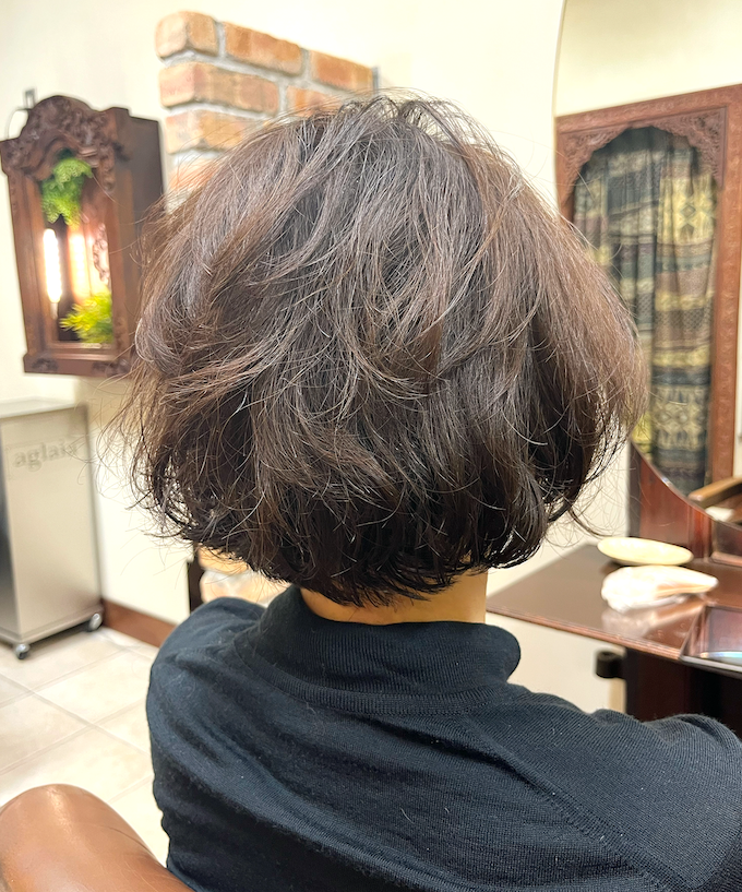 パーマをかけることでトップの髪にボリュームをだすことが可能になります。
