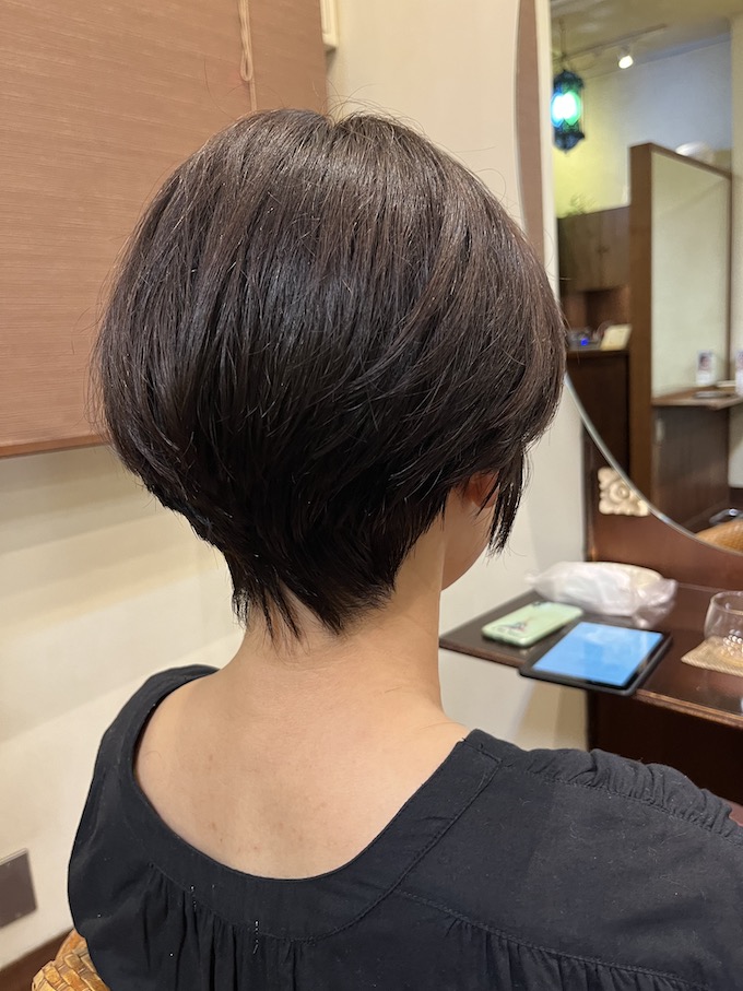 先週ボブからショートヘアにしたお客様のヘアスタイル