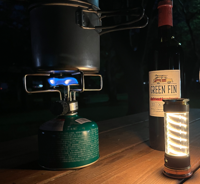 テントの中にいるときも小さくて軽いランタンだとたすかります。