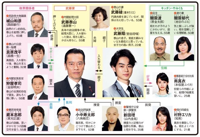 主演は遠藤憲一さん(武藤泰山 内閣総理大臣役) 、菅田将煇さん(武藤翔 泰山の息子役)。