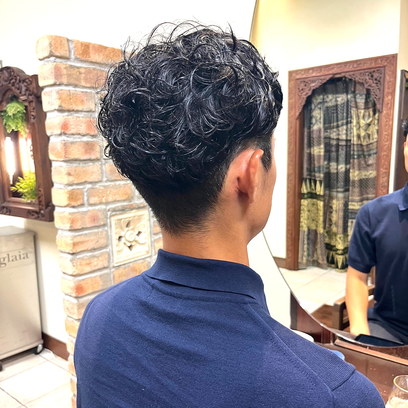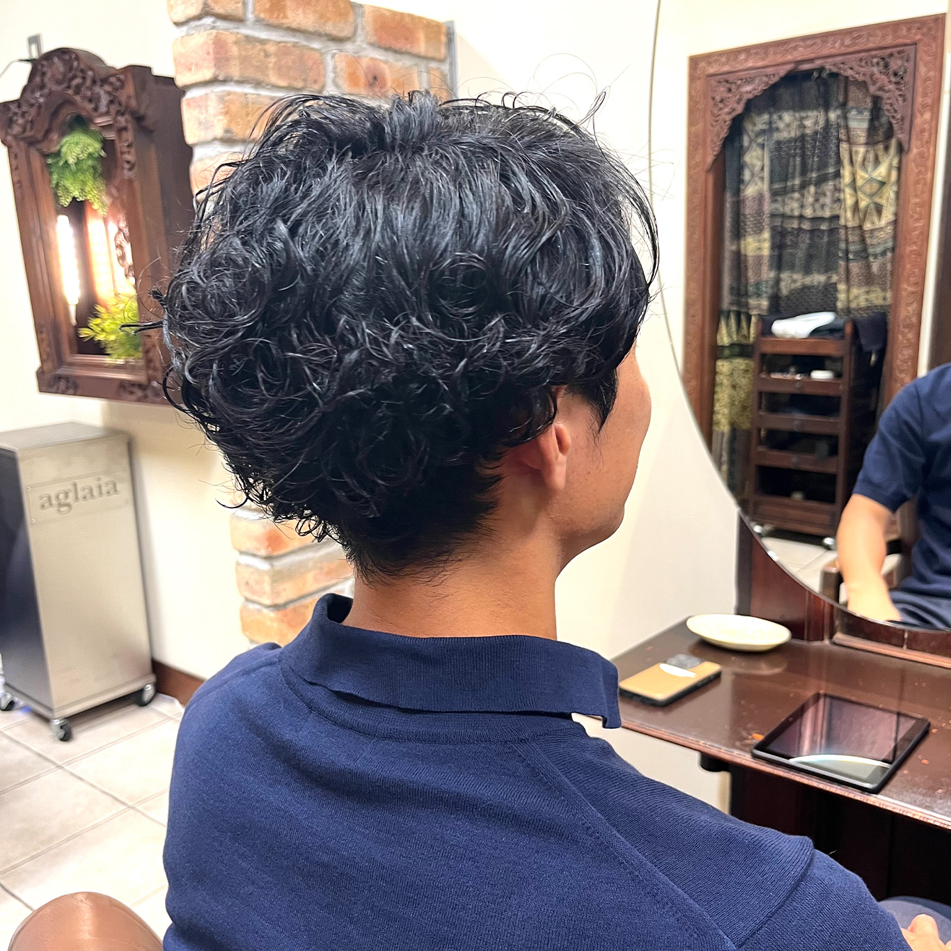 サイドとトップを短くすることで、全体的にスッキリとしながらも、クセ毛の特性を活かして動きのあるスタイルに仕上げました。