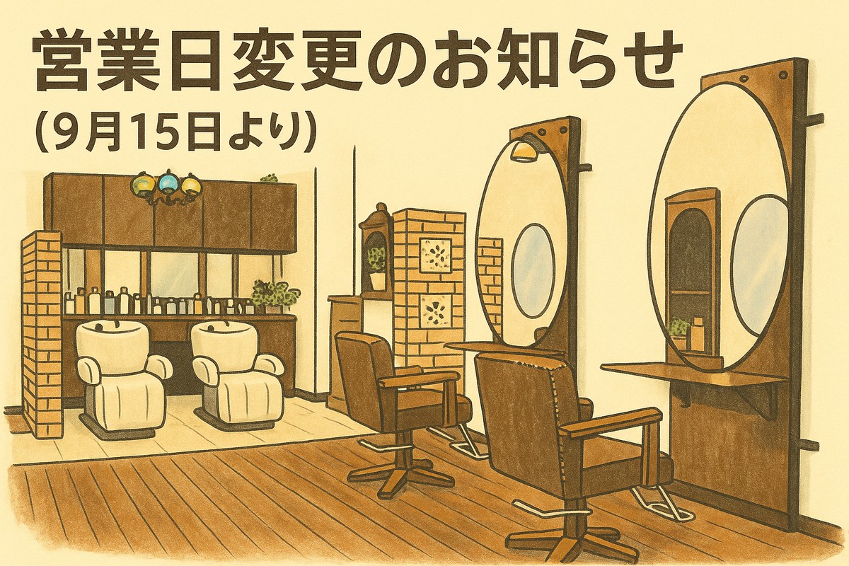 本日、9月15日より定休日と営業日について一部変更させていただくことになりましたのでお知らせいたします。